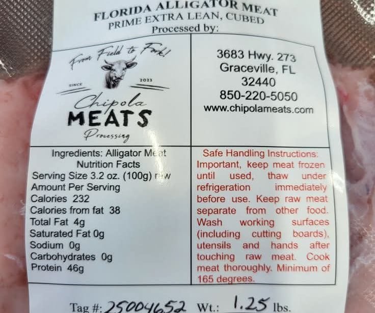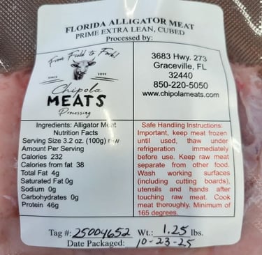 Alligator - Call our office at 850-220-5050 to discuss alligator processing